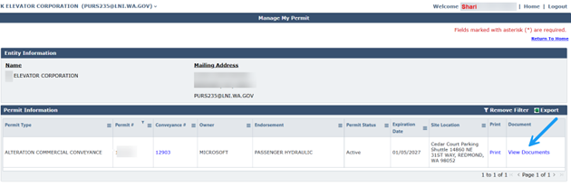 1. From your home page, choose “Manage My Permit”