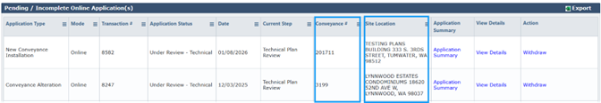 Based on feedback from customers, we have added additional columns to the Pending/Incomplete online applications tab to make finding the permit easier.
