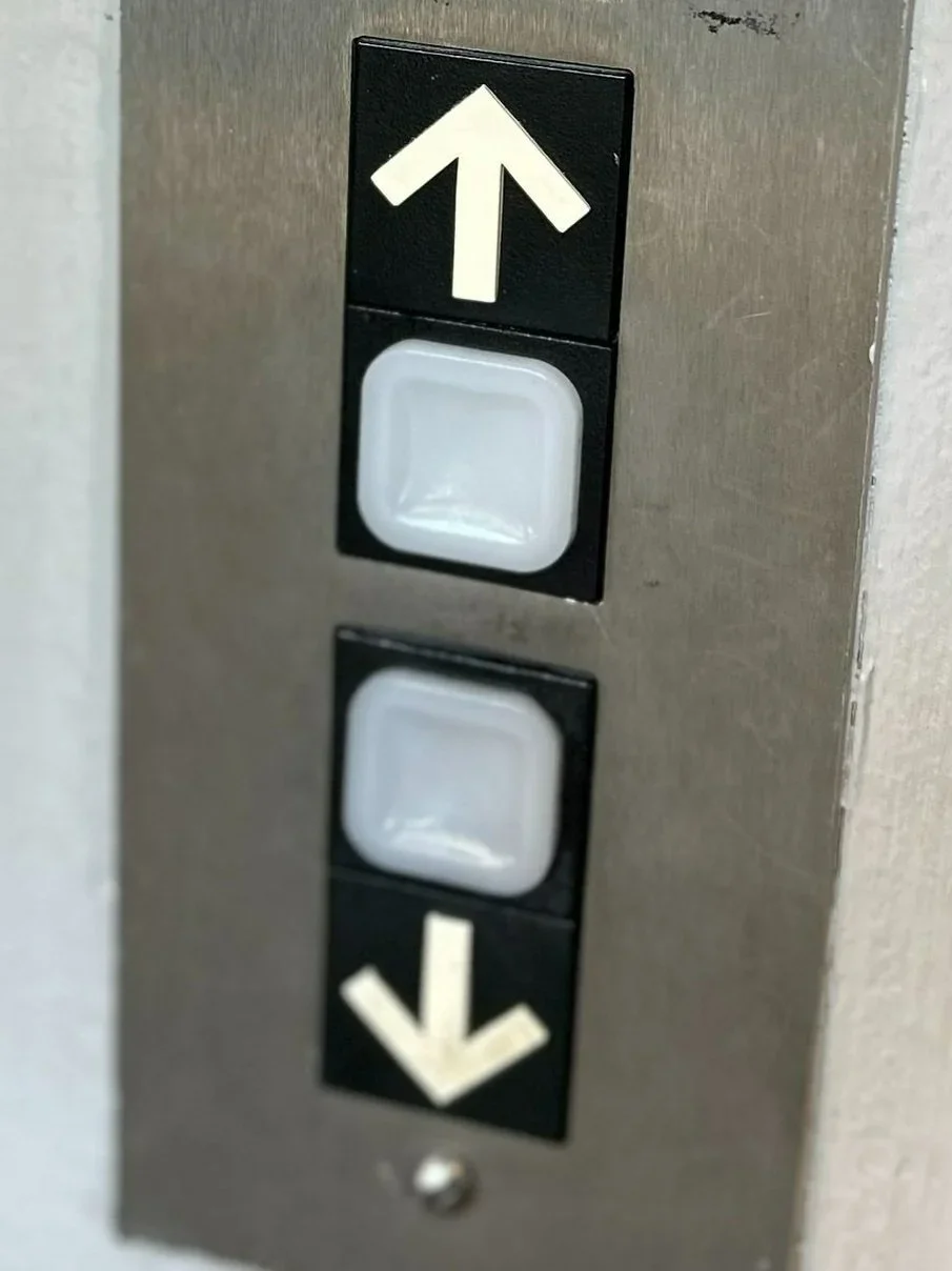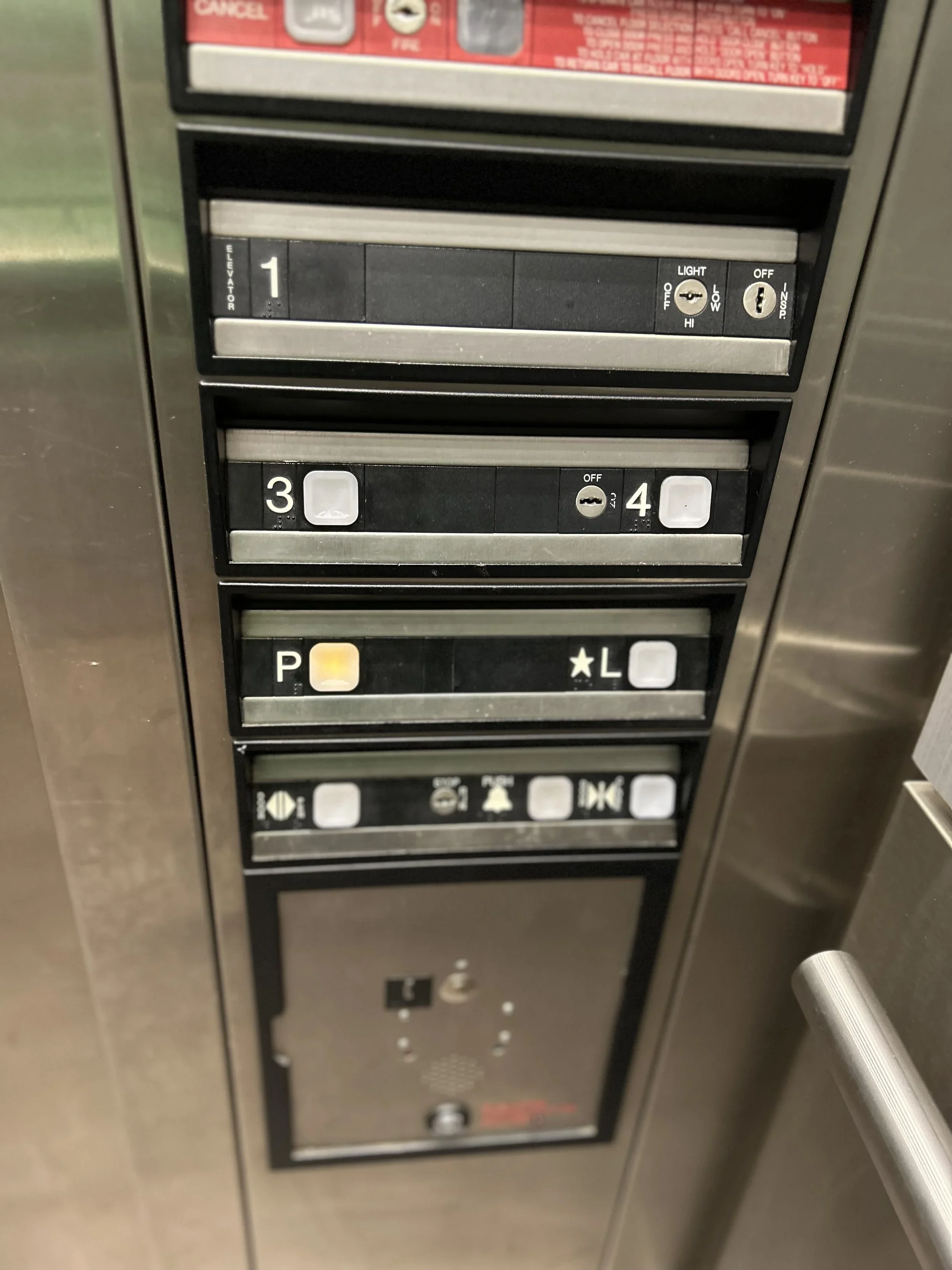 First, most DMCs were installed with “Impulse” fixtures. Square, translucent buttons with rounded corners that sit in a square black bezel in the hallway.